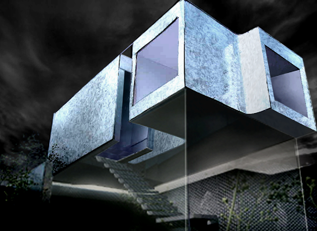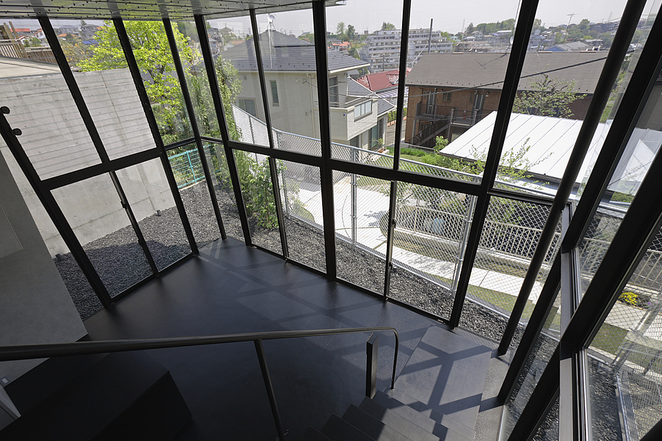 今回は【崖地-敷地が道路から3M下がった場所にある】という特殊な条件を「デフォルメ」させる事が提案の要となった。