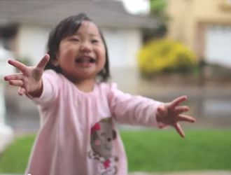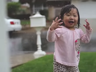 雨というものは大人にとっては、“冷たく薄暗く不快なもの”ですが、それを初めて見る赤ん坊にとっては、キラキラ輝く生の世界(雨そのもの)以外の何物でもありません。